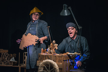 Une dizaine de marionnettes à fil et deux décors. Une heure