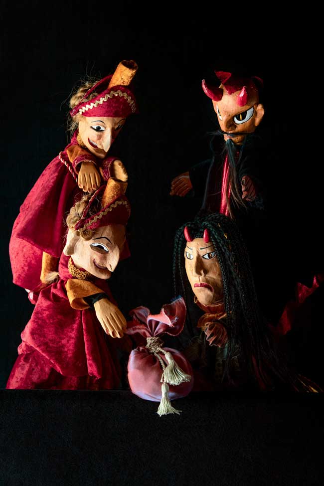 Une dizaine de marionnettes à fil et deux décors. Une heure
